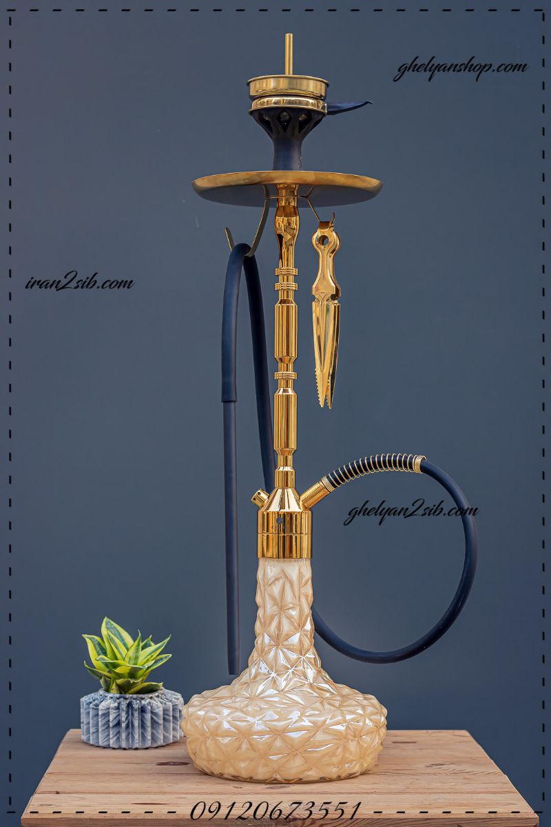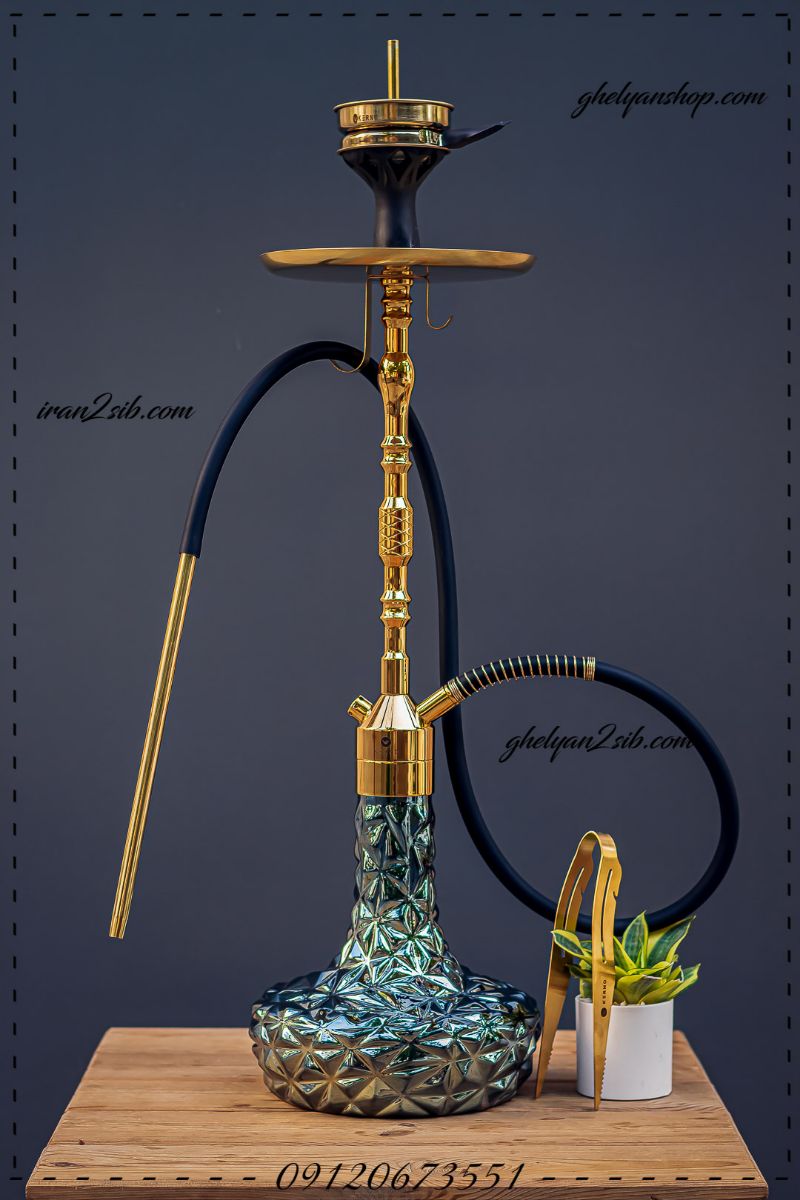 قلیان کرنو اصلی مدل بارسلونا طلایی با شیشه دلخواه